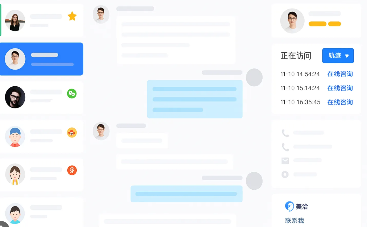 在对话窗口右侧,系统自动显示客户信息,包括客户姓名、手机号、来源渠道、历史对话记录、浏览轨迹等。这些信息帮助客服快速了解客户背景,提供更精准的服务。对于老客户,系统会自动识别并显示历史标签和备注。